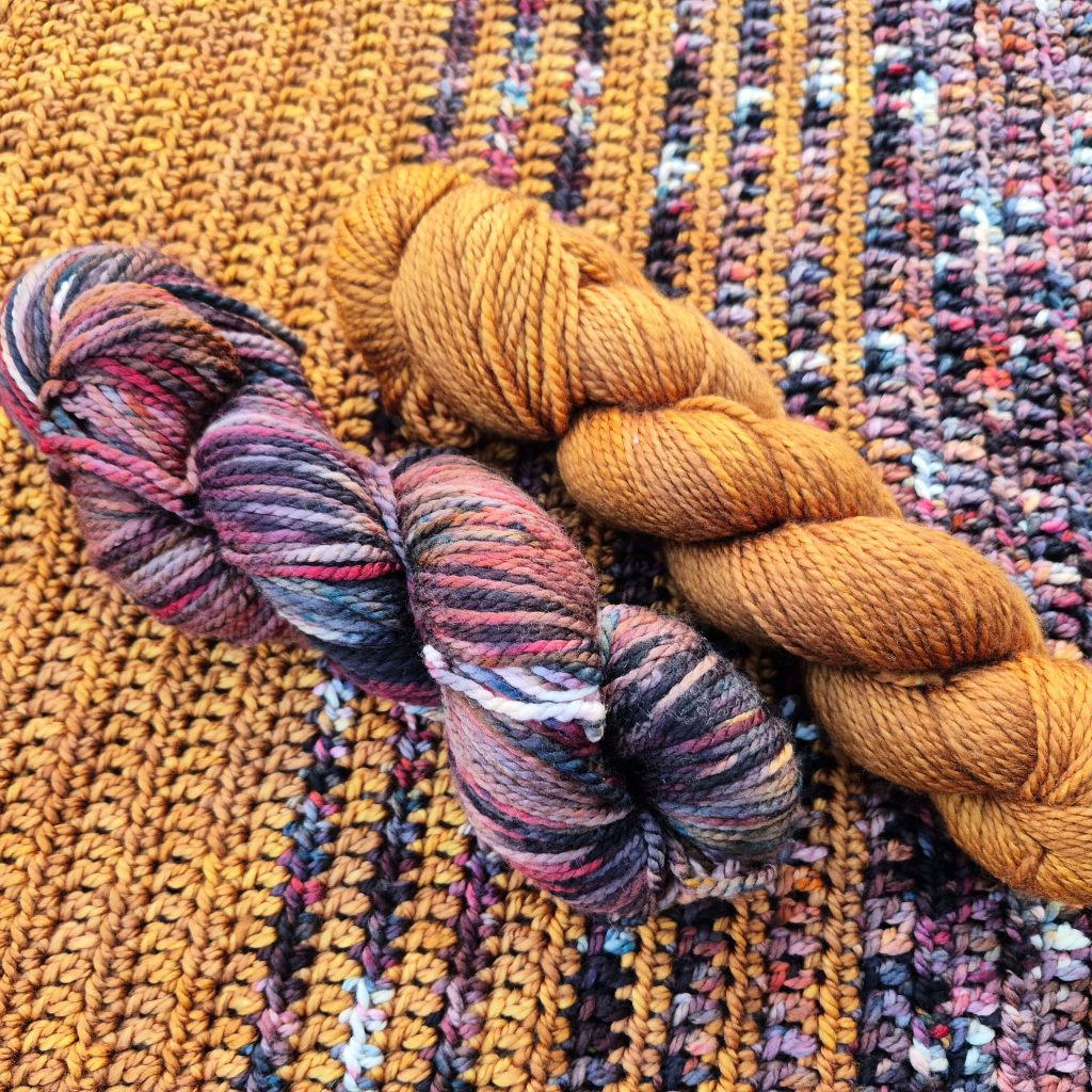 For this collaboration, I used Expression Fiber Arts Buttery Worsted yarn in the colours Coffee Stain and Cozied – and honestly, this yarn deserves a moment.